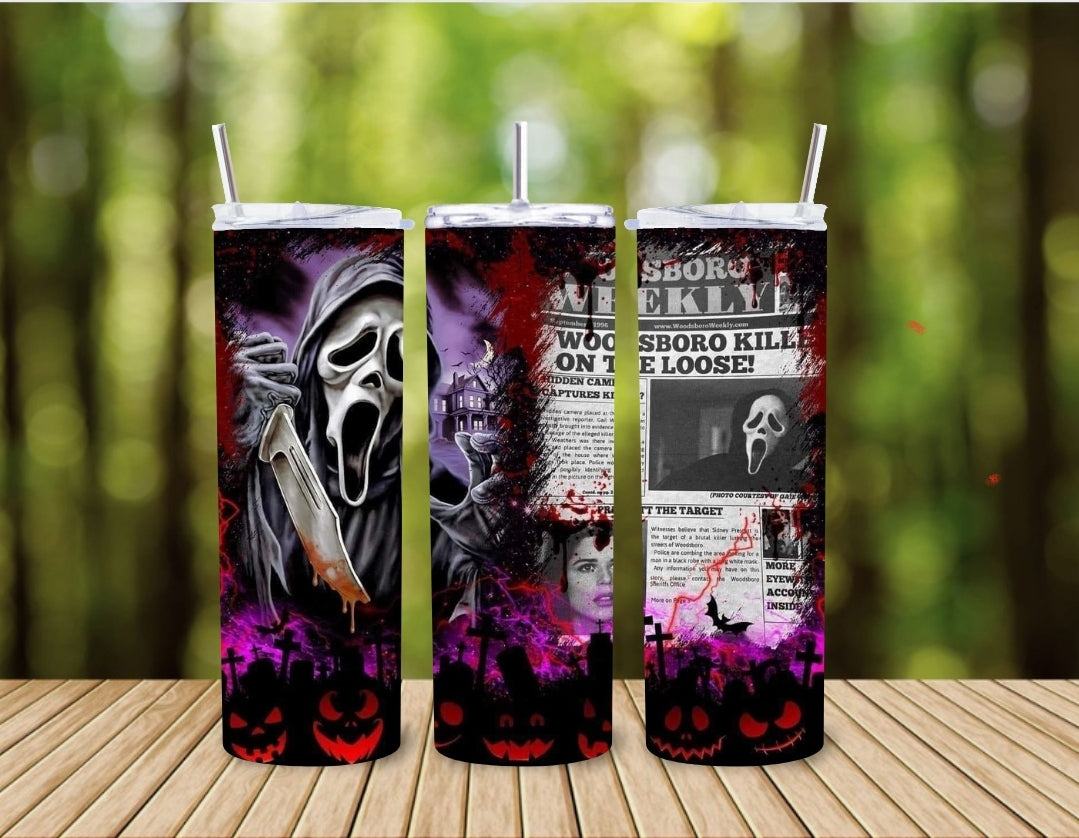 This 20oz tumbler is a great way to show off your favorite horror guy, Ghostface! Made of stainless steel this tumbler will keep your cold drinks cold for up to 12hrs and your hot drinks hot for up to 8 hrs.