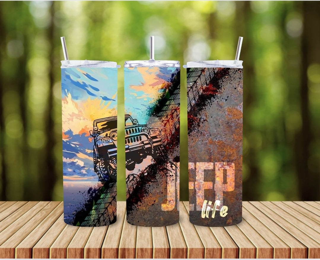 For all the Jeep fanatics out there. This Jeep life tumbler is 20 oz and made of stainless steel. It keeps your cold drinks cold for up to 12hrs and hot drinks hot for up to 8hrs.